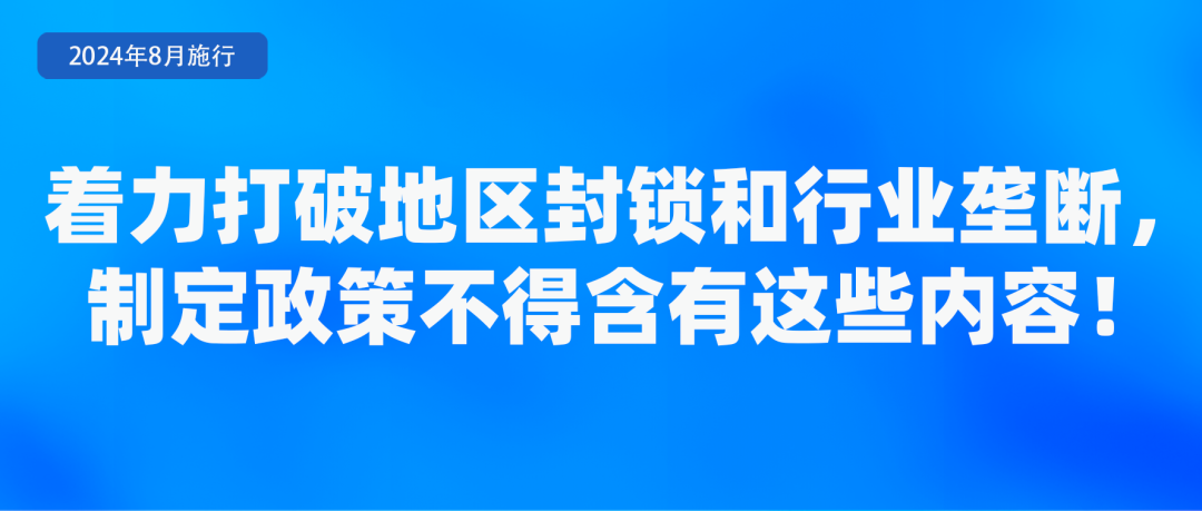 国务院总理李强签署国务院令,公布《公平竞争审查条例》,自2024年8月1日起施行。《条例》明确了公平竞争审查标准。起草政策措施,不得含有限制或者变相限制市场准入和退出、限制商品和要素自由流动、不当影响生产经营成本和影响生产经营行为的内容。市场监督管理部门组织对有关政策措施开展抽查,对违反《条例》规定的,应当督促起草单位进行整改。对违反《条例》规定的政策措施,任何单位和个人可以向市场监督管理部门举报。