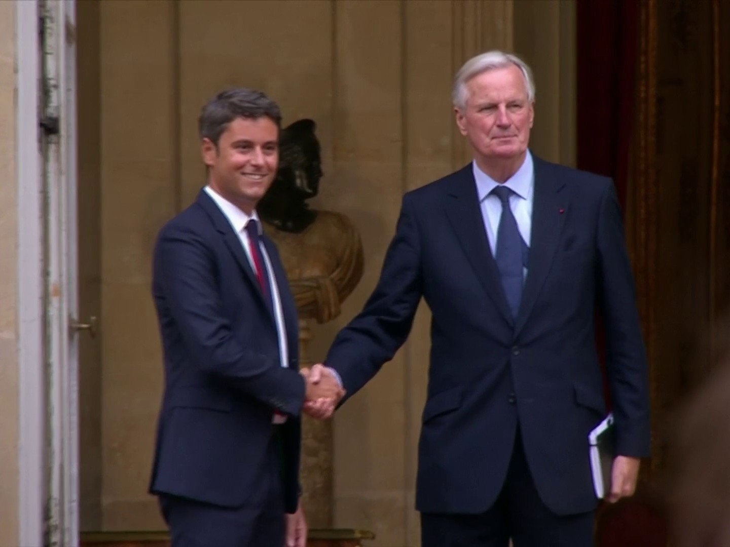 当地时间9月5日下午,法国总理府举行交接仪式,米歇尔·巴尼耶正式接替加布里埃尔·阿塔尔,担任法国政府总理一职。